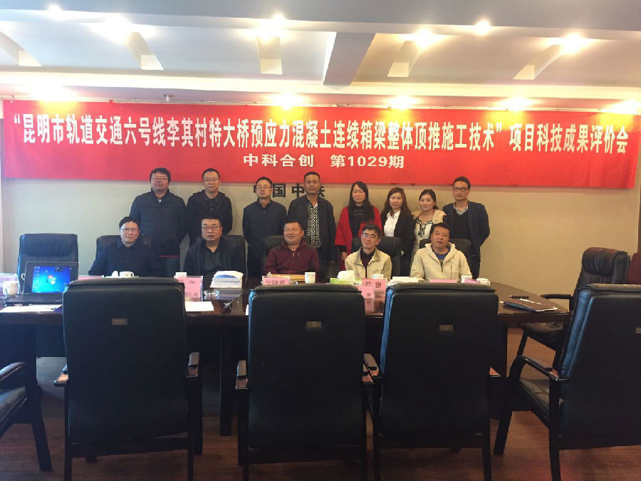 2017年3月29日,第三方专业科技成果评价机构——中科合创(北京)科技成果评价中心在昆明依据科技部《科学技术评价办法》的有关规定,按照科技成果评价的标准及程序,本着科学、独立、客观、公正的原则,组织专家对中铁八局集团昆明铁路建设有限公司、西南交通大学和昆明地铁建设管理有限公司共同完成的“昆明市轨道交通地铁六号线李其村特大桥预应力混凝土连续箱梁整体顶推施工技术”项目进行了科技成果评价。
